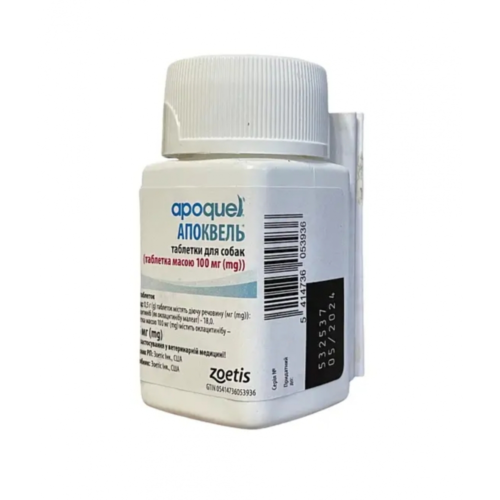 Побічні явища і ускладнення при короткочасному застосуванні Апоквела можуть проявлятися пригніченим станом, розладом функції шлунково-кишкового тракту, циститом; у тварин, які отримують Апоквел більше 16 днів, приблизно в 1% випадків може спостерігатися підвищення апетиту і агресія, шкірні і підшкірні новоутворення, інфекції шкіри, викликані дріжджовими грибками, збільшенням лімфатичних вузлів, загостренням демодекозу і онкологічних захворювань.