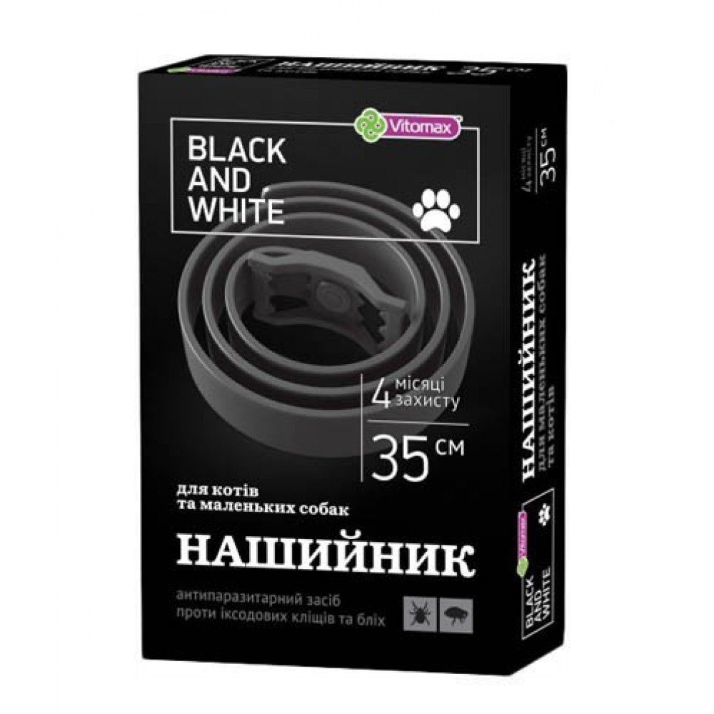 Вітомакс нашийник Black and White для котів та собак, чорний 35см