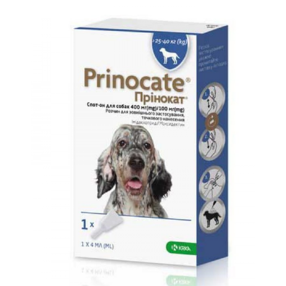 Прінокат для собак краплі на холку 25-40кг 400/100мг (ціна за 1 піпетку)