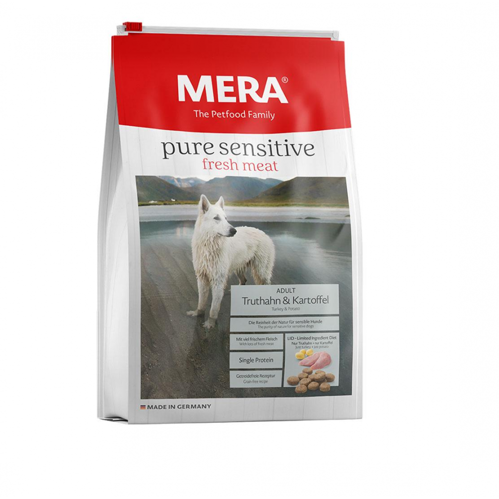 Повноцінний, беззерновий та особливо смачний корм для дорослих собак з непереносимістю або проблемами харчування розроблений за принципом holistic. • Сухий корм для щоденних потреб • Джерело тваринного білка та джерело вуглеводів • Рецепт без зерна • Підходить для хворих на лейшманіоз • LID – дієта з обмеженою кількістю інгредієнтів • Висока толерантність Саме тому наш рецепт свідомо уникає використання: пшениці та ячменю, екзотичних джерел м’яса, барвників, ароматизаторів та консервантів, генетично модифікованих інгредієнтів, цукру, сої, вітаміну К3. Сухий корм pure sensitive fresh meat особливо підходить для чутливих собак. Оскільки містить легкозасвоюване м'ясо індички, єдине джерело тваринного білка та картопля, є ніжною і легкозасвоюваною альтернативою зерну. Ми не використовуємо в рецепті інгредієнти на основі зерна. Високозасвоюваний рецепт розроблений відповідно до принципу дієти з обмеженими інгредієнтами (LID), а його склад зосереджений на основних інгредієнтах, які добре сприймаються собаками із чутливим травленням, та мінімізує ризик харчової непереносимості та алергії.