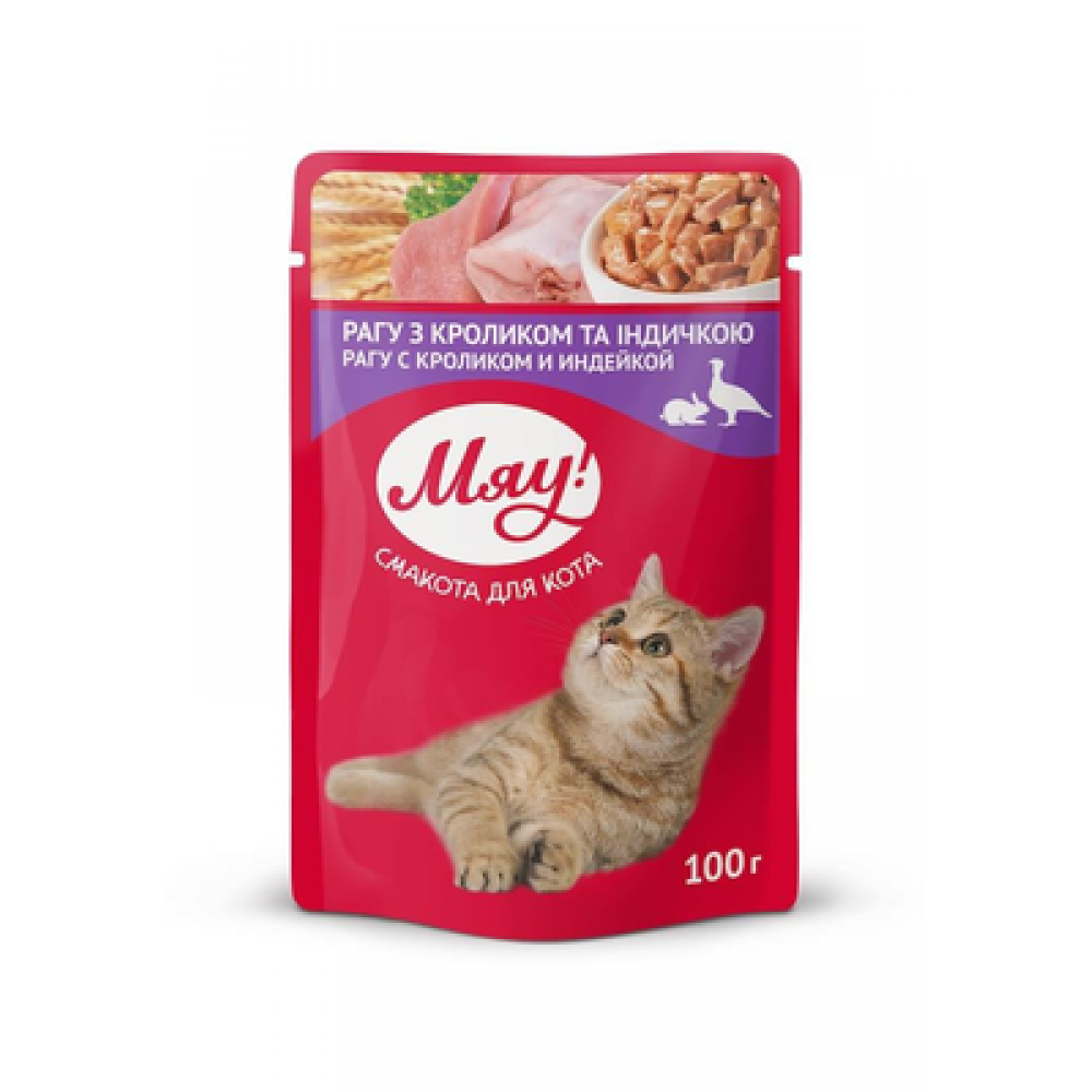 Вологий корм для дорослих кішок Мяу 100 г - кролик/індик рагу