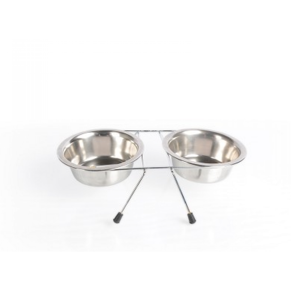Подвійна миска з нержавіючої сталі для корму і води одночасно.
