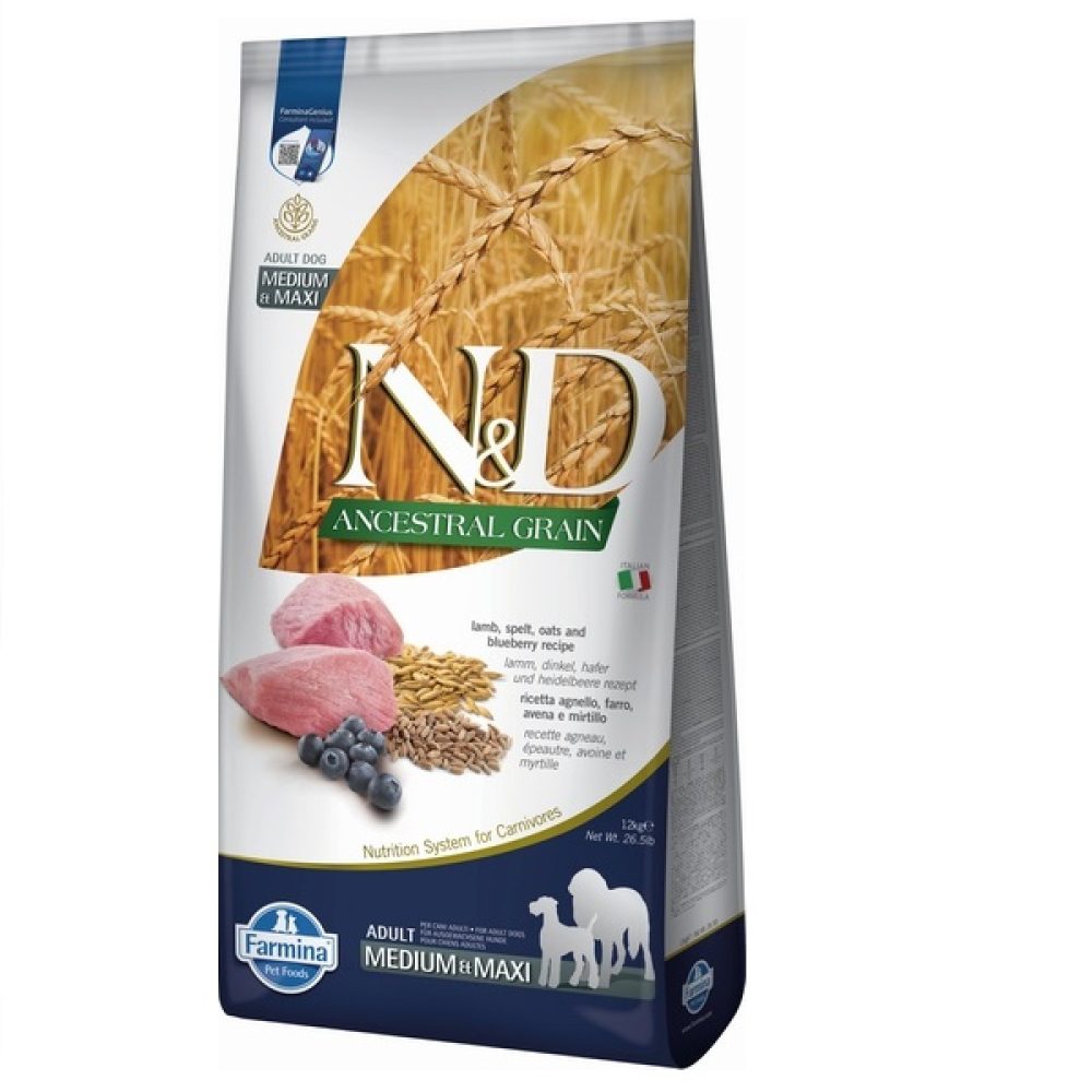 Сухий низькозерновий корм для дорослих собак середніх та великих порід Farmina N&D з ягням та чорницею 12,5кг (ціна за 1кг)